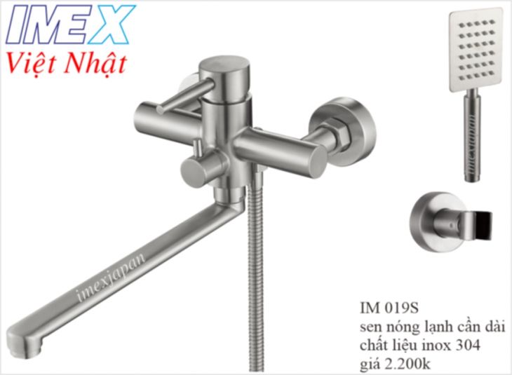 Vòi sen bồn nóng lạnh 2 chức năng, khóa mở nước bằng tay gật gù, vòi xả dài linh hoạt quay để cấp nước vào bồn tắm. inox SS304