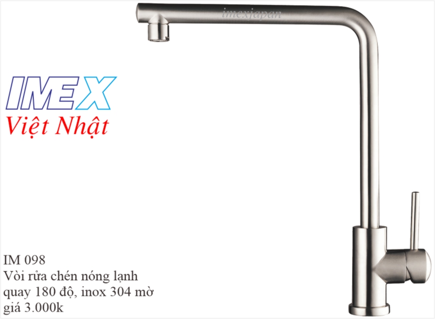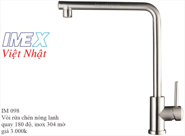 Vòi rửa chén nóng lạnh, bắt trên chậu. Inox mờ 304 khóa mở nước và chỉnh nóng lạnh bằng tay gật gù, vòi quay được.