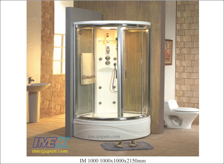 Phòng tắm massage, massage tắm đứng ngồi, tắm mưa, sen tắm đứng 3 chức năng, thanh máng khăn, kệ, bồn ngâm, nghe FM, đèn trần. Kích thước: 1000*1000*2150mm