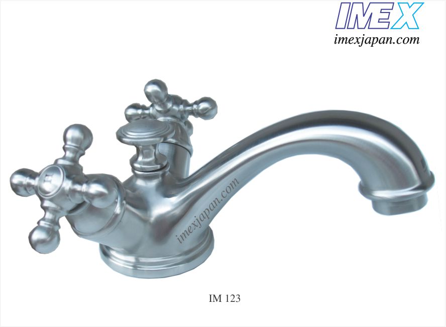 Vòi lavabo nóng lạnh lắp trên lavabo Inox mờ 304 khóa mở nước và chỉnh nóng lạnh bằng 2 núm vặn. Chưa bao gồm xả.