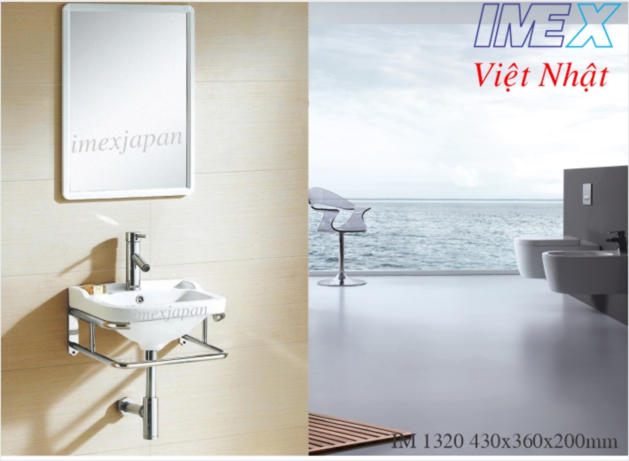 Lavabo treo IM 1320 (giá cả bộ 2.300 000đ), men sứ nano chống bám bẩn, có xả tràn.
