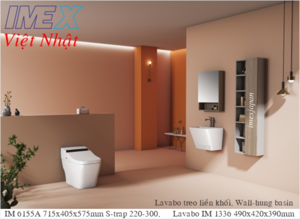 Lavabo treo liền khối IM 1336 có xả chống tràn men sứ Grade A Nano chống bám bẩn, được sản xuất trên dây chuyền công nghệ cao của hãng IMEX bảo hành phần sứ 5 năm wall-hung basin installation, kích thước 490x420x390mm.