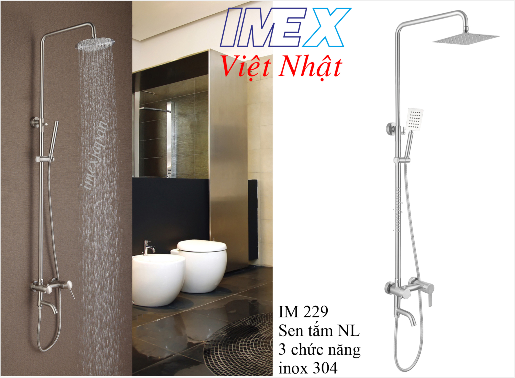 Vòi sen nóng lạnh 3 chức năng, khóa mở nước bằng tay gật gù, vòi xả linh hoạt quay. inox SS304 đài sen vuông / tròn tùy chọn. Vị trí 302. KT: 143,5*25*14*19cm