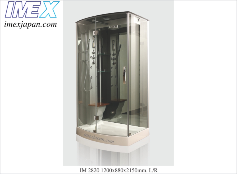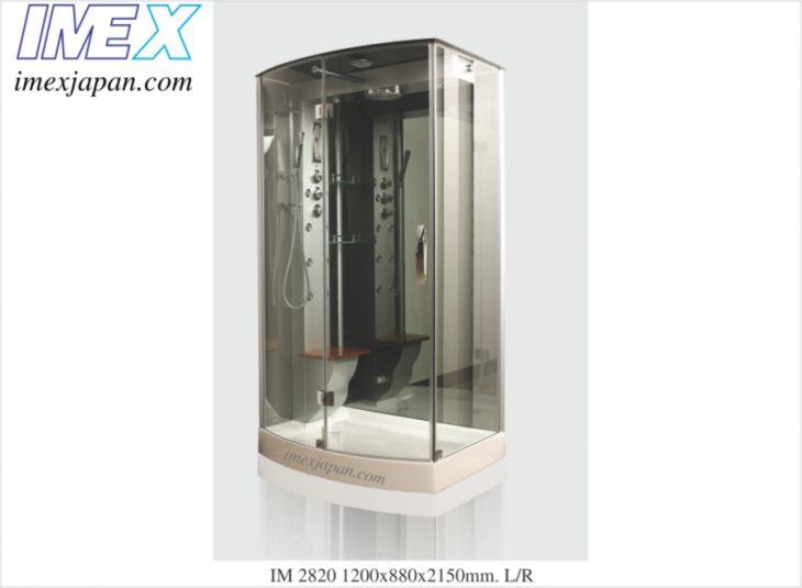 Phòng tắm XHMS, máy xông hơi 3.5kw, 6 jets massage đứng ngồi, sen tắm đứng 3 chức năng điều chỉnh cao thấp. tắm kiểu mưa. nghe FM, nghe điện thoại, đèn trần, đèn vách, quạt hút, loa. điều khiển từ xa, Kích thước: 1200x850x2150mm
