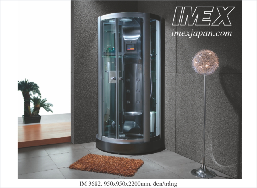 Phòng tắm XHMS màu đen, máy xông hơi 4.5kw, 6 jets massage đứng ngồi, massage chân, sen tắm đứng 3 chức năng điều chỉnh cao thấp. tắm kiểu mưa, nghe FM, nghe điện thoại, đèn trần, quạt hút, loa. điều khiển từ xa, không có tivi, Kích thước:950*950*2200mm