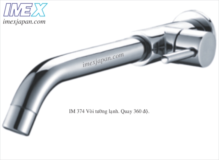 Vòi tường cần dài lạnh, khóa mở nước bằng tay gạt, đồng mạ chrome, quay lên được