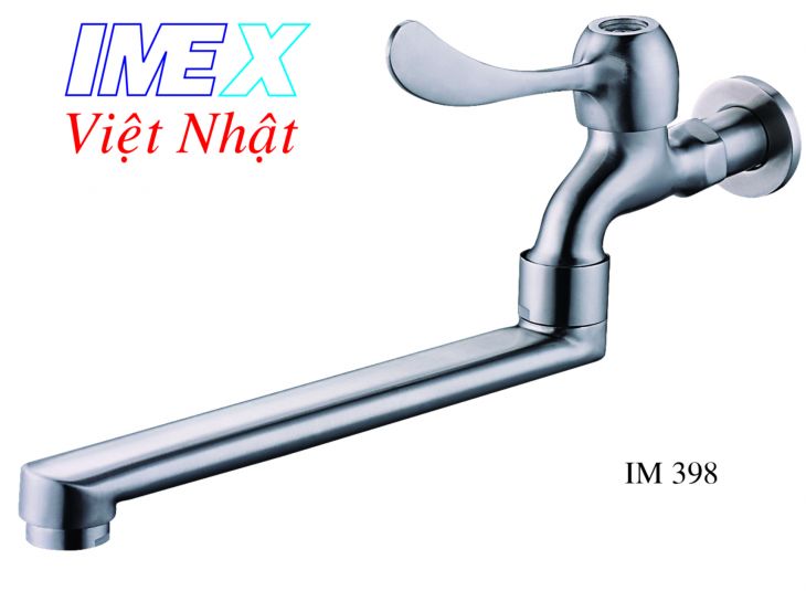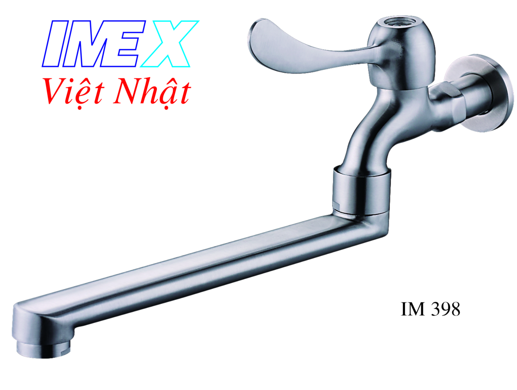 Vòi tường cần dài lạnh, khóa mở nước bằng tay gạt, inox 304, quay qua quay lại được