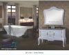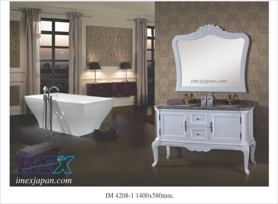 lavabo tủ gỗ 2 hộc kiểu cổ điển, mặt đá, tô sứ có xả chống tràn, bao gồm vòi, xả, kiếng soi, kích thước: 140x58. kiếng 120x100cm
