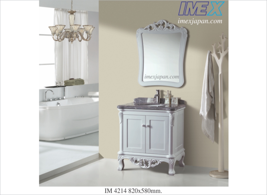 lavabo tủ gỗ kiểu cổ điển, mặt đá, tô sứ có xả chống tràn, bao gồm vòi, xả, kiếng soi, kích thước: 82x58cm