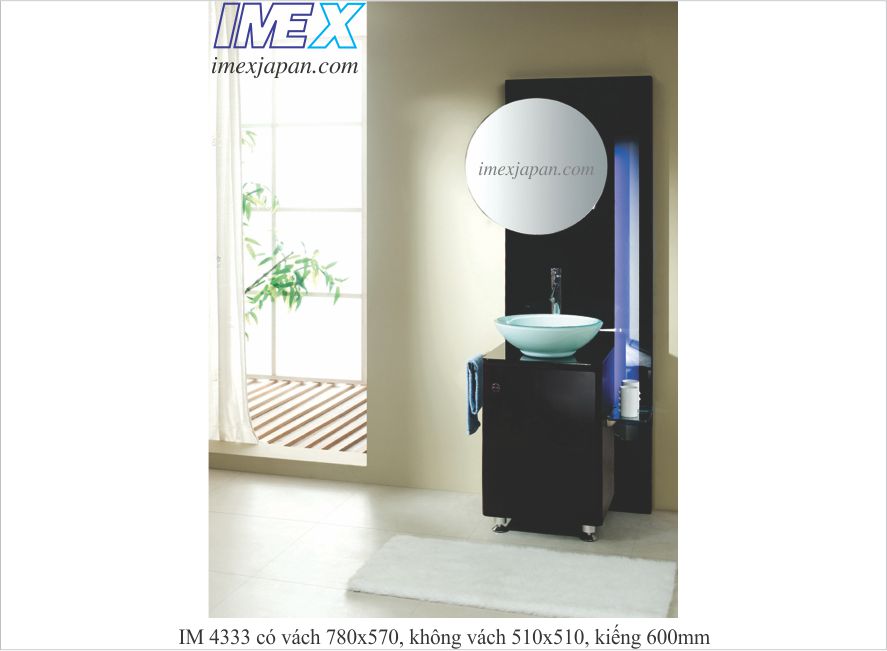 Không chỉ thế, sản phẩm lavabo tủ gỗ IM 4333 có vòi xả kiếng soi, vách kiếng có đèn, có thanh vắt khăn, kệ để ly góp phần tăng sự tiện ích cho khu vực vệ sinh.