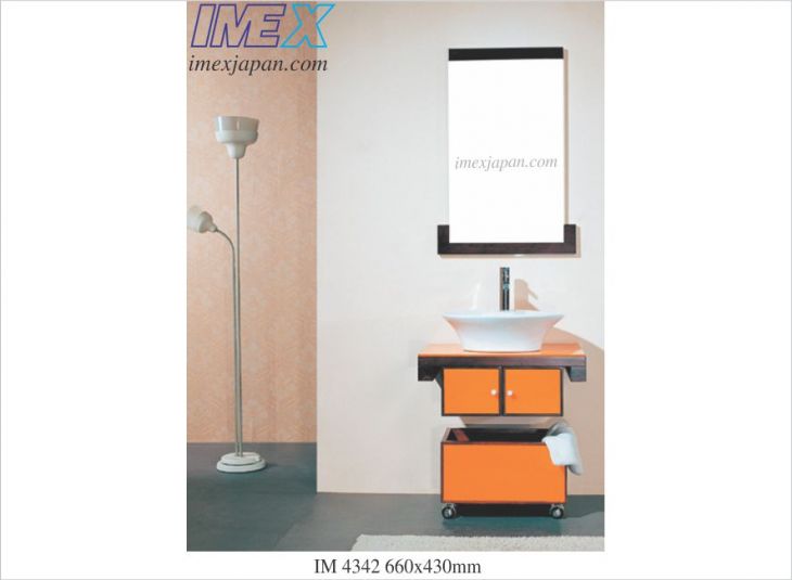 lavabo tủ gỗ, mặt kiếng, tô sứ có xả chống tràn, tủ dưới có 4 bánh xe di động để thay đồ dơ bẩn, bao gồm vòi, xả và kiếng soi. kích thước: 660*430mm