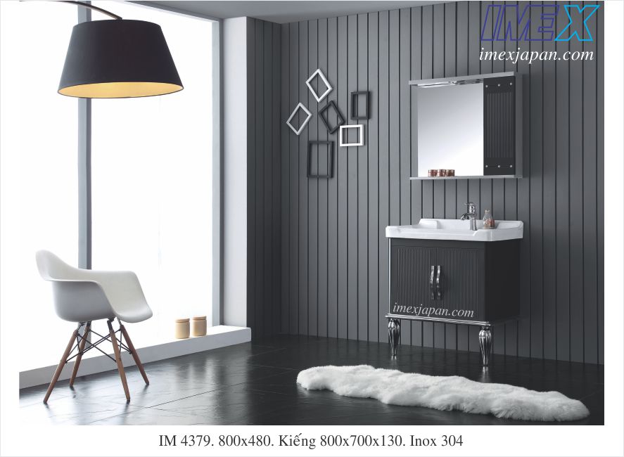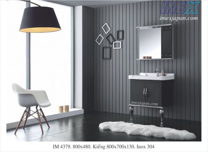 Lavabo tủ inox 304, tô sứ tráng nano chống bám bẩn, tủ kiếng trượt 80x70x13cm