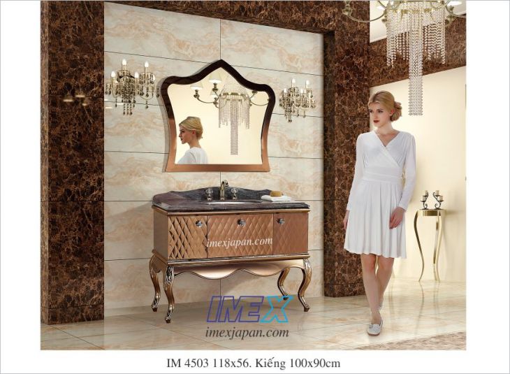 Lavabo tủ inox 304, mặt đá marble, tô sứ tráng nano chống bám bẩn, kiếng 100x90cm