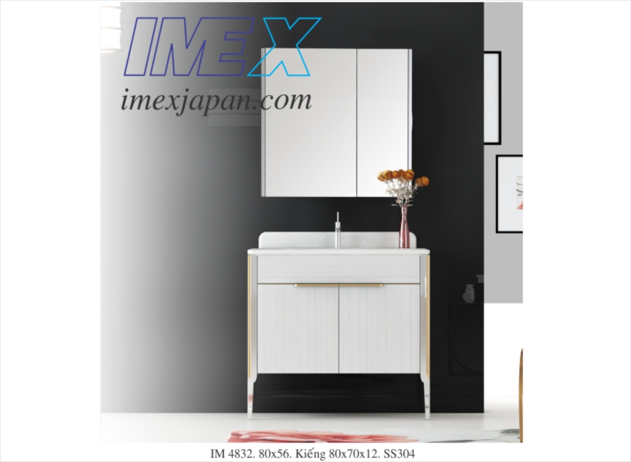 Lavabo tủ inox 304, tô sứ tráng nano chống bám bẩn, tủ kiếng 2 ngăn 80x70x12cm