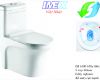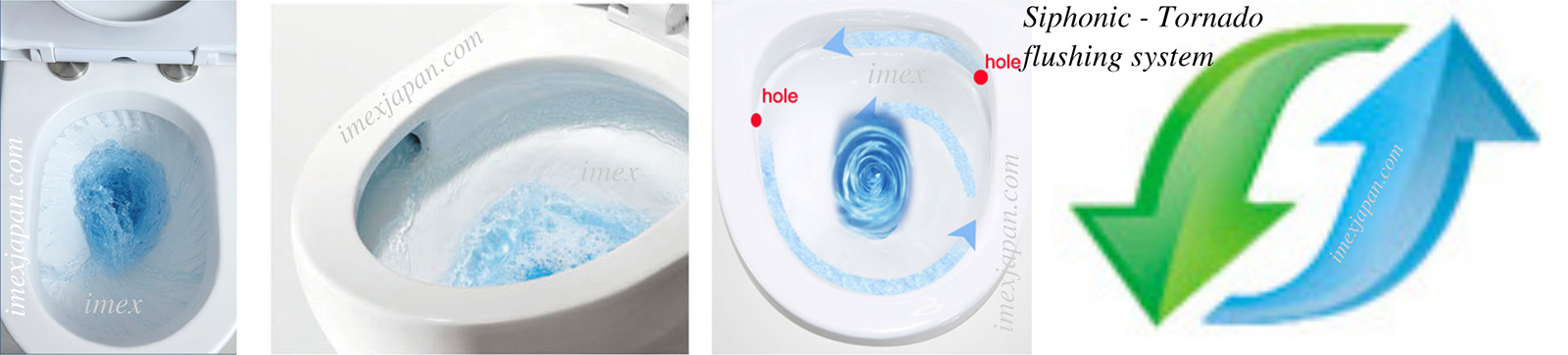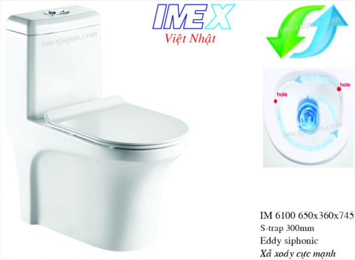 Bàn cầu 1 khối, nắp rơi êm nhựa UF, xả nhấn 3/6 lít, tim xả trên sàn S-trap 300mm. Hệ thống xả Siphonic - Tornado đẩy và hút men nano chống bám bẩn