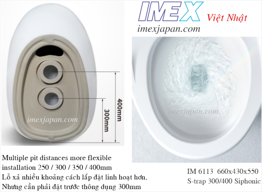 Bồn cầu IM 6113 S-trap 300/400mm nhiều khoảng cách hố lắp đặt linh hoạt hơn ánh sáng nghệ thuật sang trọng trong ngôi nhà của bạn