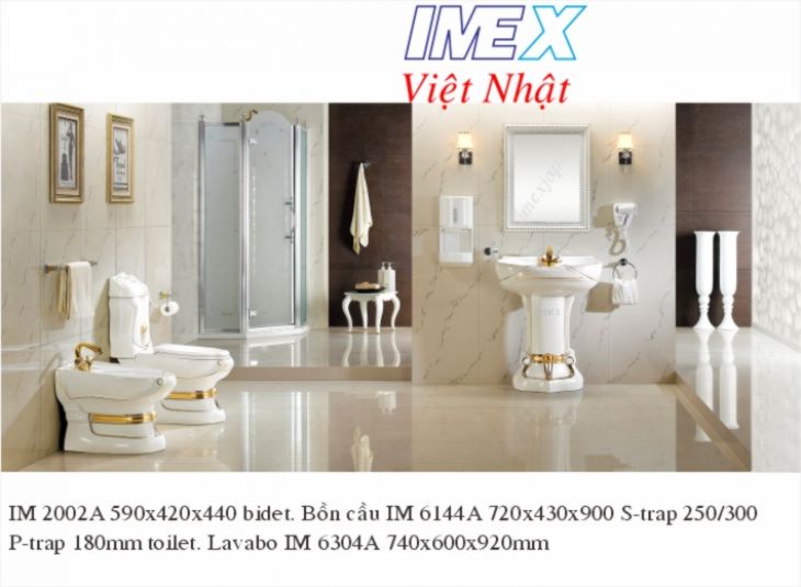 IM 6144A bồn cầu hoa văn 2 khối hệ thống xả siphonic xả 3/6 lít S-trap 300mm kích thước 720x430x900mm (lưu ý không dùng chất tẩy rửa có axit để lau chùi)