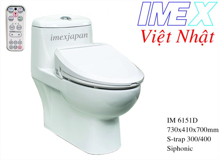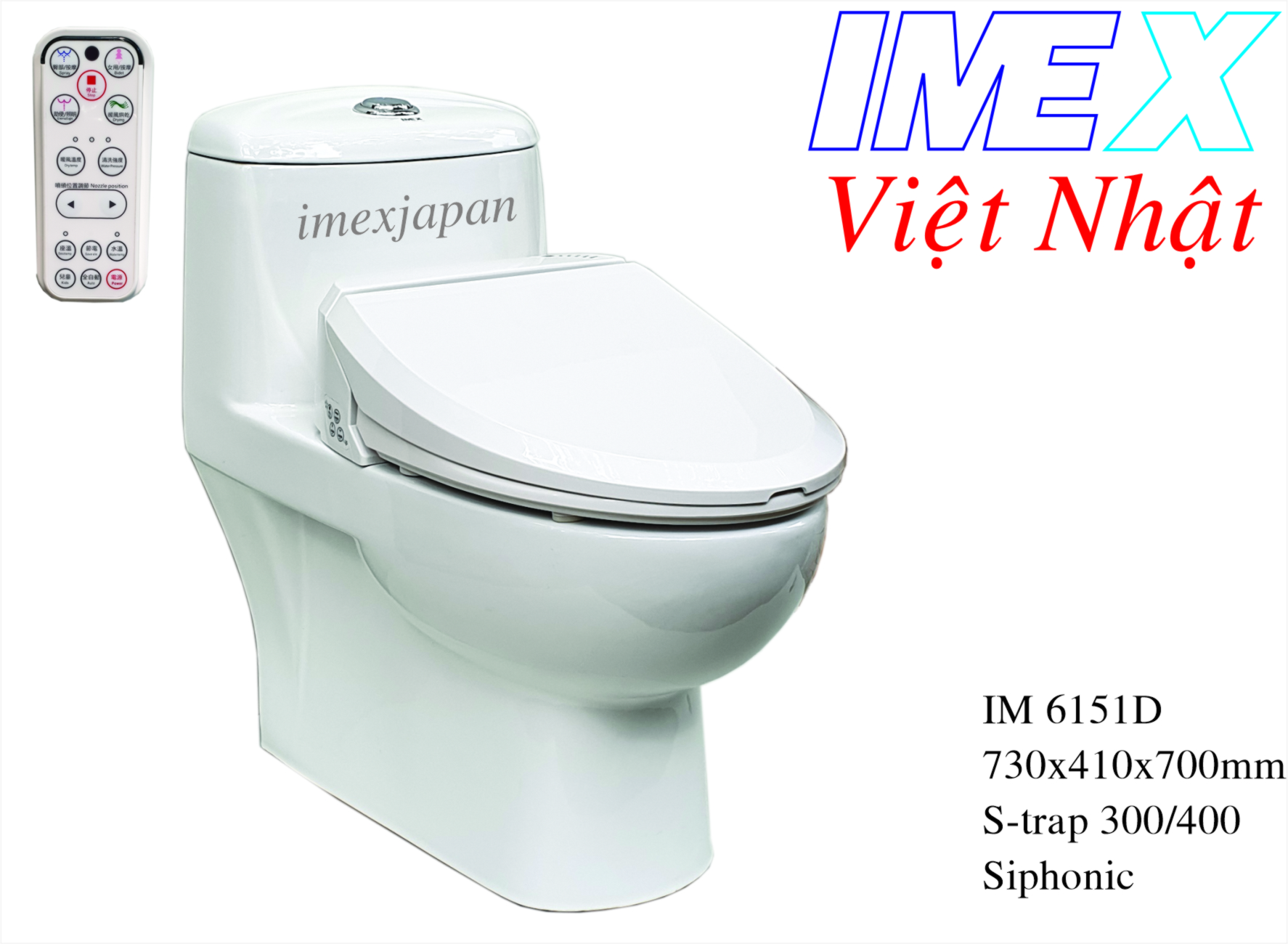 Bàn cầu 1 khối và nắp rửa dùng điện rửa và sấy khô, rửa cho phụ nữ, rửa chuyển động…có remote điều khiển từ xa nắp rơi êm, xả 3/6 lít hệ thống xả siphonic đẩy và hút, tim xả trên sàn 300/400mm,