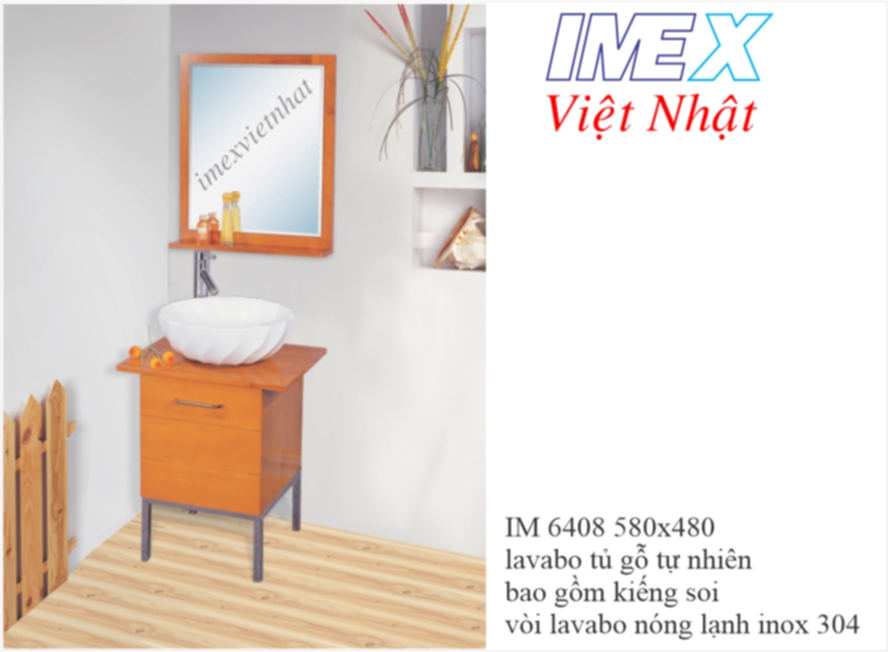 Lavabo tủ gỗ tô sứ, bao gồm kiếng, vòi và xả, kích thước: 580*480mm
