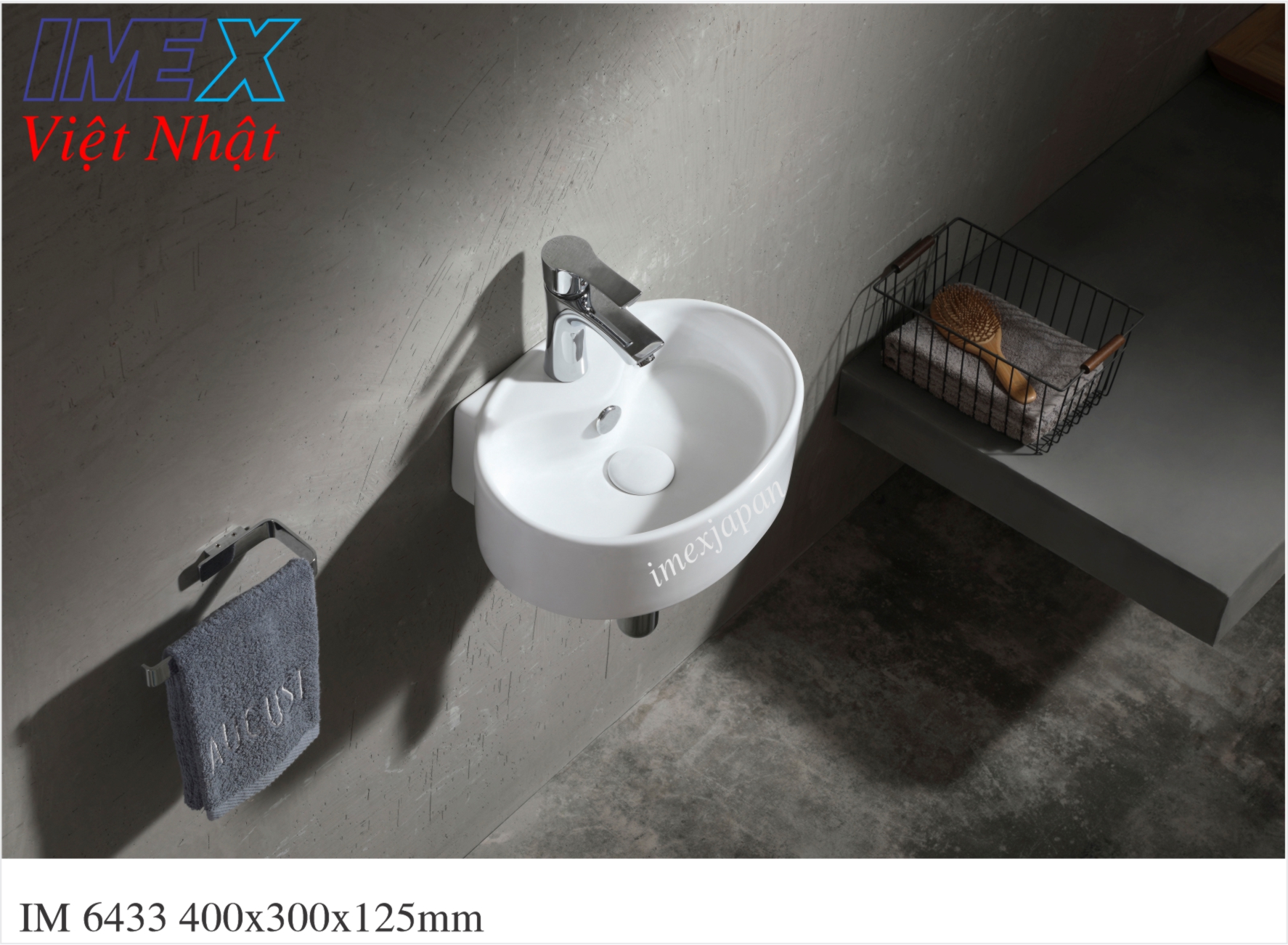 Lavabo treo tường hoặc để bàn IM 6433, men sứ nano chống bám bẩn, có xả tràn.