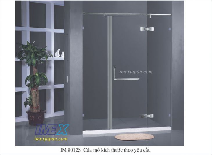 Khung tắm cửa mở, kính cường lực dày 8mm, 1 cánh mở, khung inox. Không có đế. Kích thước theo yêu cầu. Giá 2500/m2.