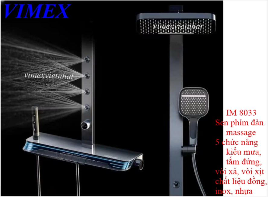 Sen phím đàn massage 5 chức năng: kiểu mưa, tắm đứng, vòi xả, vòi xịt