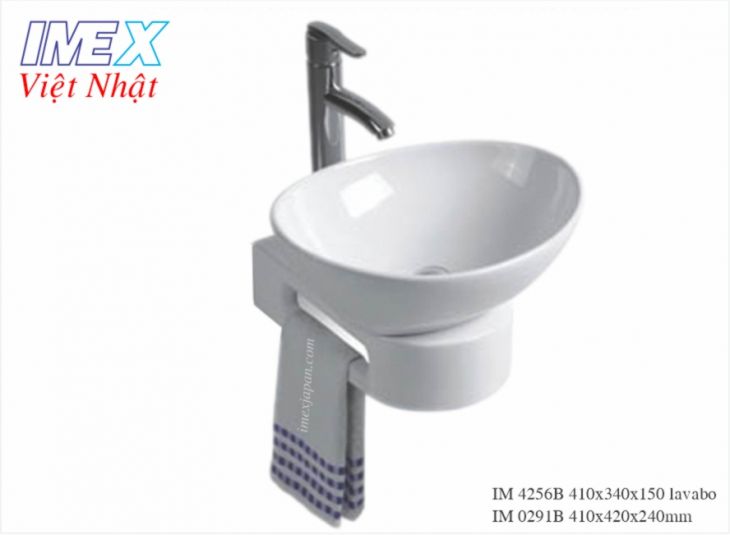 lavabo treo IM 0291B, men sứ nano chống bám bẩn, vòi gắn phía sau.