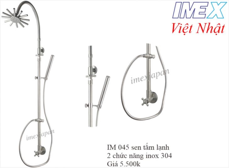 Sen tắm lạnh 2 chức năng, tắm mưa, tắm đứng, Inox mờ 304. sen tắm đứng điều chỉnh cao thấp. Khóa mở nước bằng núm vặn