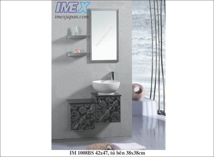 lavabo tủ inox 304, tô sứ tráng nano chống bám bẩn, bao gồm kiếng à tủ bên 38x38cm