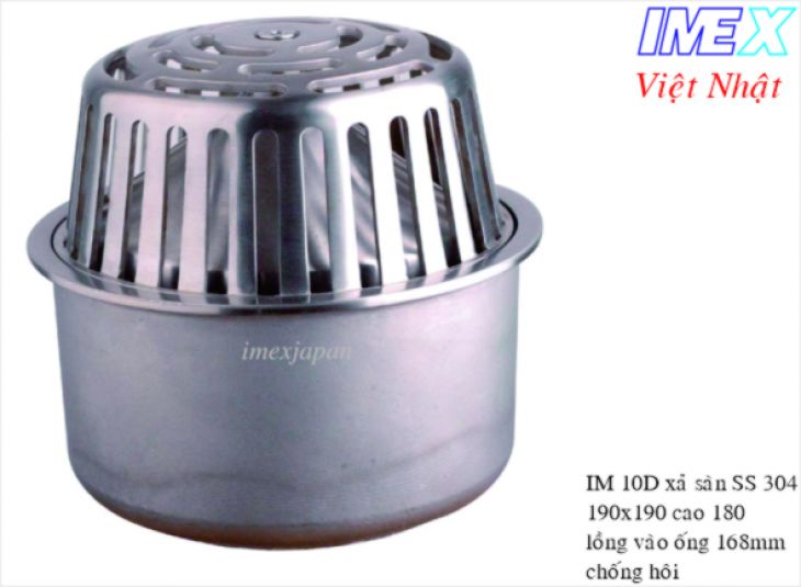 Xả sân thượng hoặc sân vườn để chắn rác chống hôi, Inox mờ 304 đúc. Kích thước:190mm, lồng vào ống 168mm