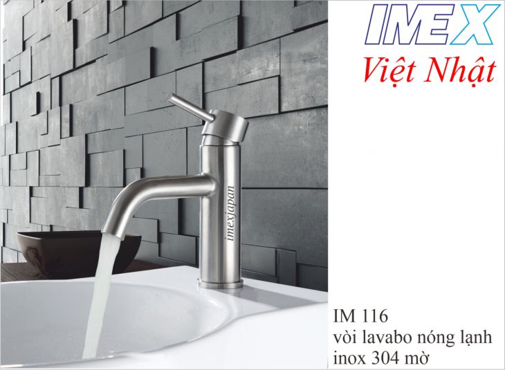 Vòi lavabo nóng lạnh, Inox mờ 304 khóa mở nước và chỉnh nóng lạnh bằng tay gật gù, vòi thấp lắp trên lavabo,