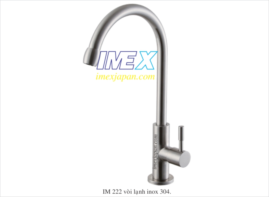 Vòi rửa chén lạnh Imex Việt Nhật IM 222 Chất liệu: Inox 304 Thao tác đơn giản: Khóa mở nước bằng tay gạt Thiết kế đẹp, sang, dễ sử dụng Vòi gắn trên chậu rửa chén. Giá đã bao gồm dây cấp nước.