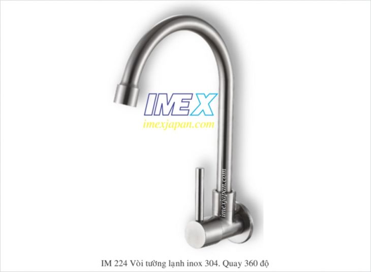 Vòi tường lạnh khóa mở nước bằng tay gạt, vòi quay qua quay lại được, chất liệu inox 304