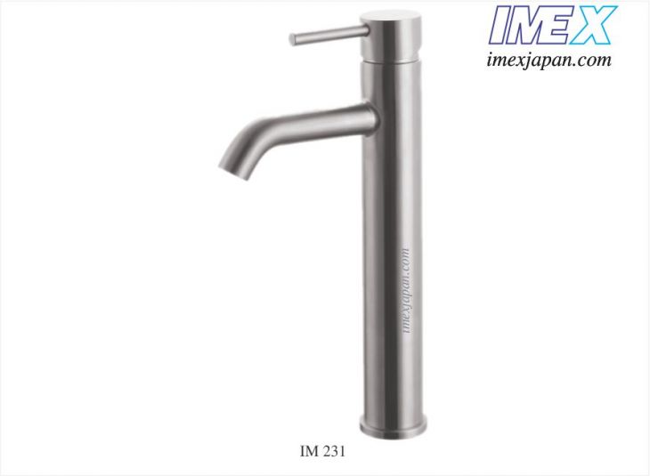 Vòi lavabo lạnh, khóa mở nước bằng tay gạt, vòi cao lắp vào lavabo nổi, chất liệu inox 304 giá bao gồm dây cấp. KT: 280*140*40mm.