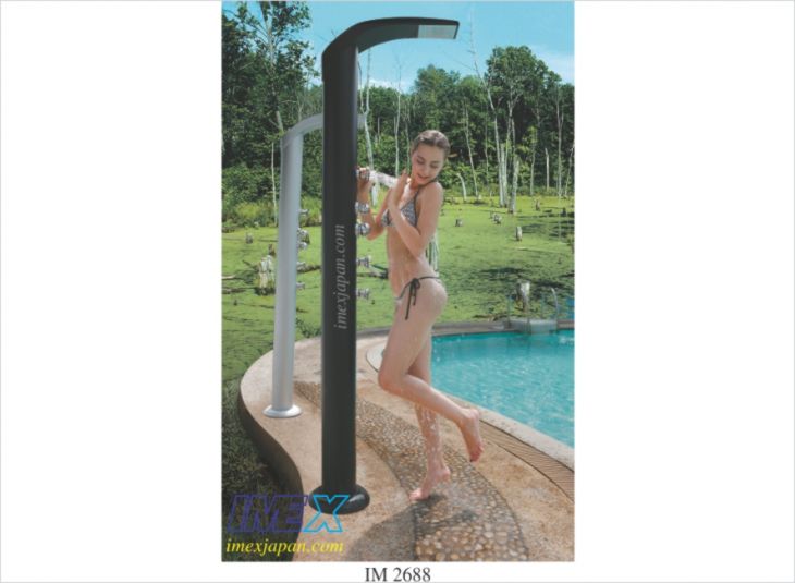 Sen tắm bể bơi hay sân vườn massage, khóa mở nước chỉnh nóng lạnh bằng tay gật gù, chuyển chức năng bằng núm nhỏ, 220cm chất liệu nhôm, đồng mạ chrome.