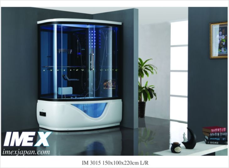 phòng tắm xông hơi massage, máy xông hơi 3.5kw, 6 jets massage đứng ngồi, massage nằm bơm 1.5hp và 1 gối, tắm đứng bát sen chỉnh 3 chức năng chỉnh cao thấp, tắm đứng kiểu mưa, masage chân, đèn vách, đèn trần, quạt hút, loa, nghe FM, nhận điện thoại, khử trùng ozone, điều khiển từ xa Không.