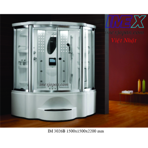 Phòng tắm xông hơi massage, máy xông hơi 4.5kw, 6 jets massage đứng, massage nằm bơm 1.5hp và sục khí 300w 2 gối, tắm đứng bát sen chỉnh 3 chức năng chỉnh cao thấp, tắm đứng kiểu mưa, masage chân, đèn vách, đèn trần, quạt hút, loa, nghe FM, tivi màn hình cảm ứng. điện thoại gọi đi, gọi đến, khử trùng ozone, điều khiển từ xa. Kích thước: 1500*1500*2200mm tv 240x200mm