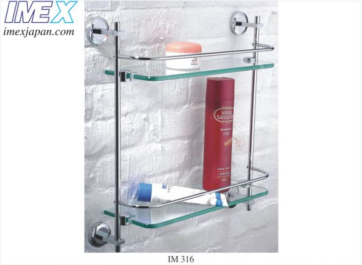 Kệ kiếng 2 tầng, chất liệu bằng đồng mạ crom và kiếng. KT: 167*124*362mm. Vị trí 407.