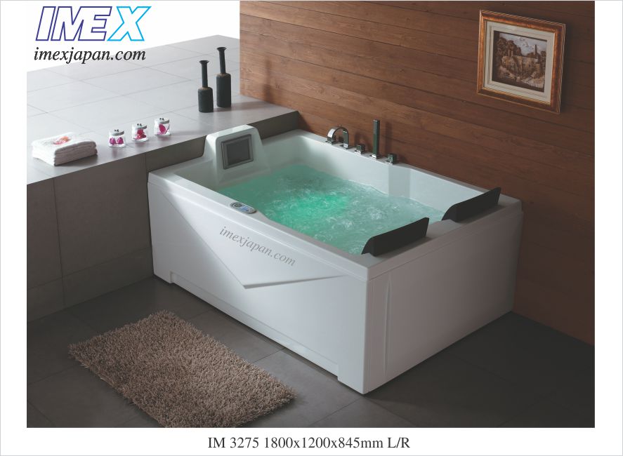 Bồn tắm nằm massage, massage tạo sóng 1.5 ngựa, massage sục khí 300w, nghe FM kết nối CD, sen tắm 3 chức năng linh hoạt, có đèn 1 đèn led đổi màu, có tivi 8.5" 1800*1200*845mm