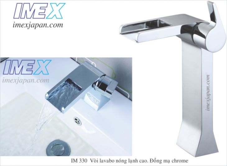Vòi lavabo cao chảy dạng thác nước, khóa mở nước và chỉnh nóng lạnh bằng tay gật gù, đồng mạ chrome