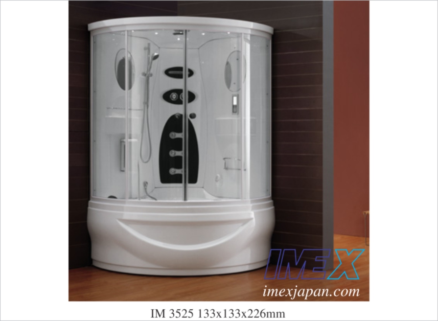 phòng tắm xông hơi massage, máy xông hơi 3.5kw, 6 jets massage đứng, massage nằm bơm 1.5hp và sục khí 300w 2 gối, tắm đứng bát sen chỉnh 3 chức năng chỉnh cao thấp, tắm đứng kiểu mưa, kiểu thác nước, masage chân, đèn trần, quạt hút, loa, nghe FM, điện thoại gọi đi, gọi đến, khử trùng ozone, điều khiển từ xa. Kích thước: 133x133x226cm