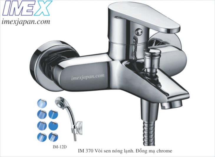 Sen tắm nóng lạnh 2 chức năng, vòi sen tắm đứng, vòi xả nước, tắm đứng bát sen 7 chức năng. Khóa mở nước chỉnh nóng lạnh bằng tay gật gù, đồng mạ crom