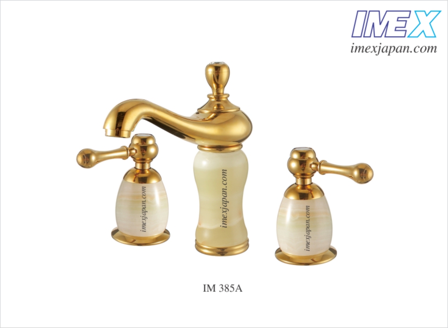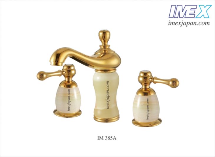 Vòi lavabo nóng lạnh, khóa mở nước và chỉnh nóng lạnh bằng 2 tay gạt. Đồng mạ vàng và đá Gắn lavabo hoặc bàn đá 3 lỗ giá chưa xả