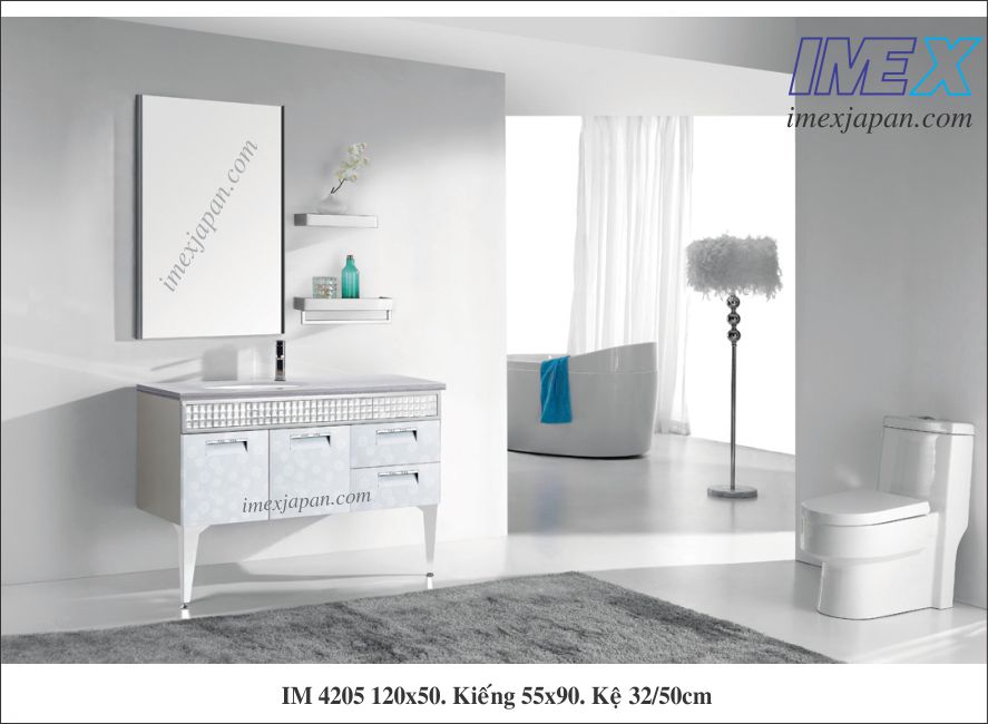 lavabo tủ inox 304, tô sứ tráng nano chống bám bẩn, kiếng 55x90cm, kệ 32/50cm