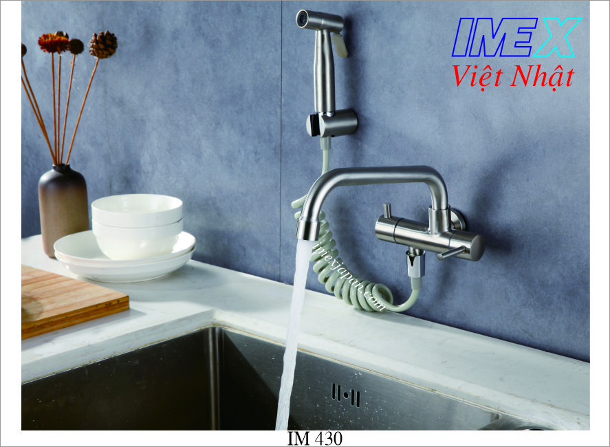 Vòi tường lạnh cùng vòi xịt dây sun gọn inox 304