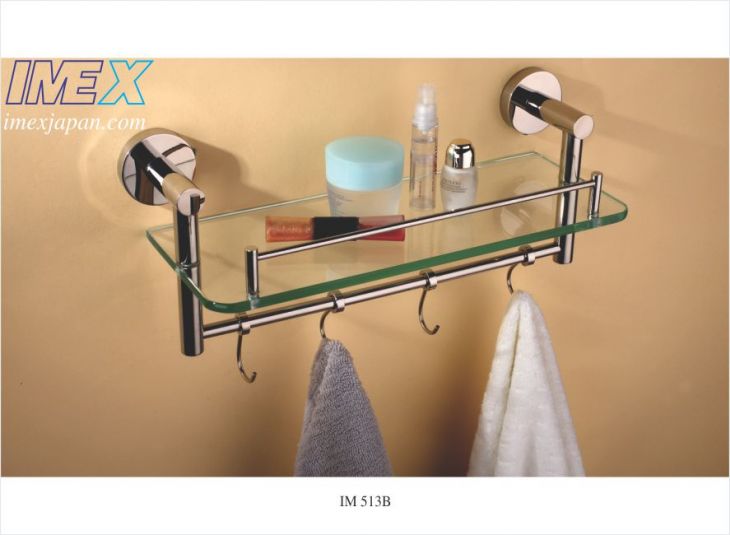 Kệ kiếng cùng móc áo, Inox 304 sáng bóng 370*130*172mm.