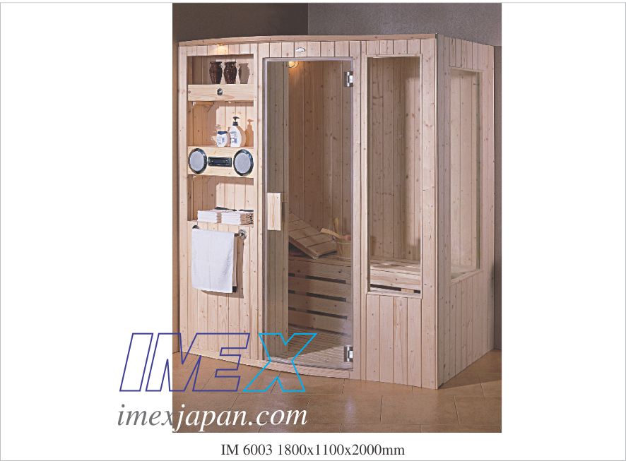 Phòng xông hơi khô, 4 người, máy xông hơi khô 6kw, có đá, xô, gáo, đồng hồ đo nhiệt độ, đồng hồ cát, có đầu DVD loa, đèn đọc sách, quạt hút. Kệ để đồ, thanh treo khăn. Kích thước: 1800*1100*2000mm.