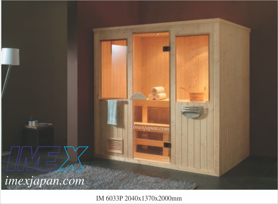 Phòng xông hơi khô, gỗ thông, kiếng cường lực. gồm lò xông khô 6kw/220v đá xông, xô, gáo, đồng hồ đo nhiệt độ, đồng hồ cát, đèn đọc sách, khi lắp đặt cần phải có đường xả nước, điện 220v, CB (áp tô mát) để ngắn điện. Kích thước: 204x137x200cm