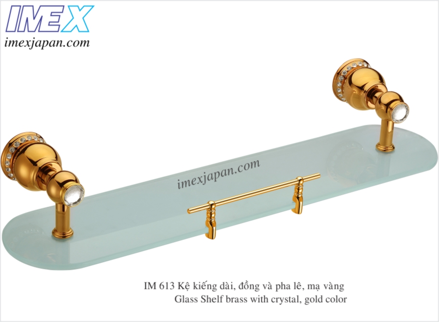 Kệ kiếng đồng mạ vàng đính pha lê như kim cương Glass Shelf. brass with crystal, gold color. 500x120mm