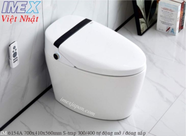 Bồn cầu thông minh tự động đóng mở nắp ghế, rửa hậu môn, rửa cho phụ nữ, rửa chuyển động, điều chỉnh áp lực nước rửa, nhiệt độ nước rửa. Sấy khô điều chỉnh mát, ấm, nóng, khủ mùi tự động, tự động xả, tự làm sạch vòi rửa, ánh sáng ban đêm, núm xoay đa chức năng, cảm ứng chân để mở ghế, điều khiển từ xa thông minh, có két chứa nước phù hợp cho nhà có áp lực nước yếu... 700x410x560 S-trap 300/400, Feet feeling flush, Automatic cover, Buttocks cleaning, Bidet for female cleaning, Seat temp. Water temperature, Dry, Automatic deodorization. Remote flushing, Jet move cleaning. Instant hot water type.
